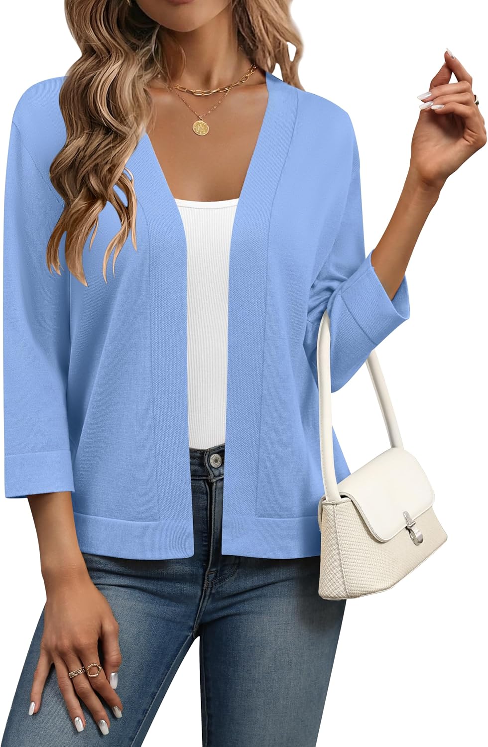Zeagoo Women's 3/4 Sleeve Open Front Cropped Knit Cardigan Sweater Casual Bolero Shrugs for Dresses Summer Outfits