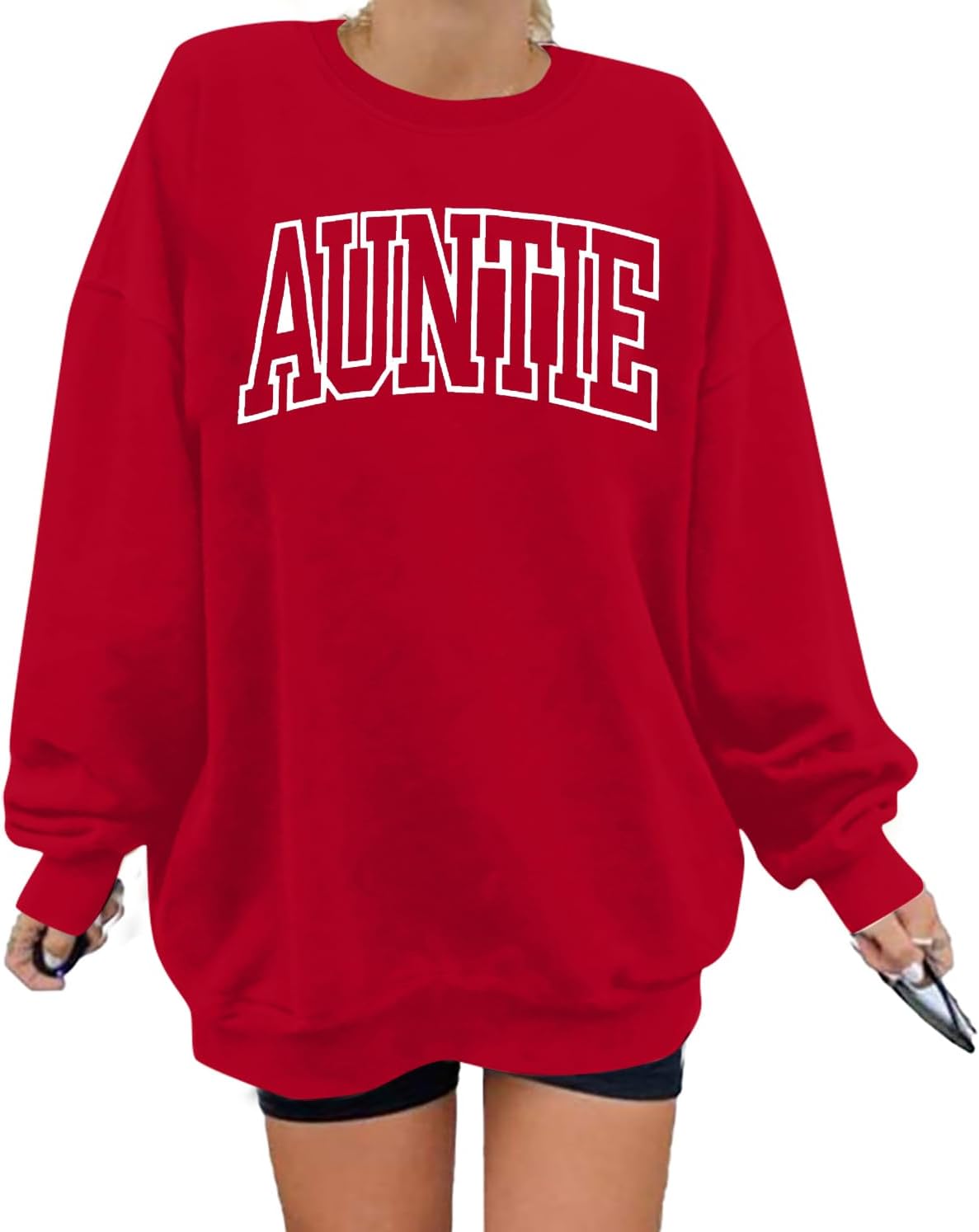 LOTUCY Womens Aunt Sweatshirt Cool Aunt Crewneck Sweatshirt Auntie Letter Print Long Sleeve Pullover Top