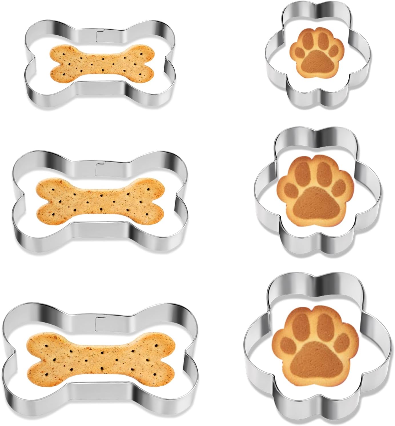 - Included Components: 6pcs cookie cutters (3 bones + 3 dog paws)