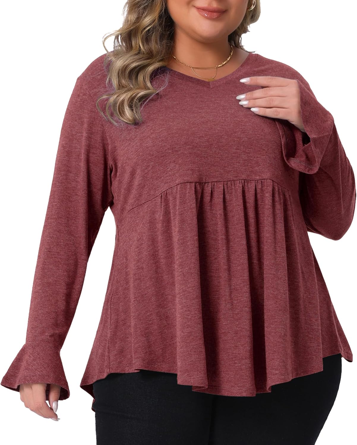 Agnes Orinda Plus Size Long Sleeve Shirts for Women Flared Sleeves Pullover Dressy Casual Peplum Tops