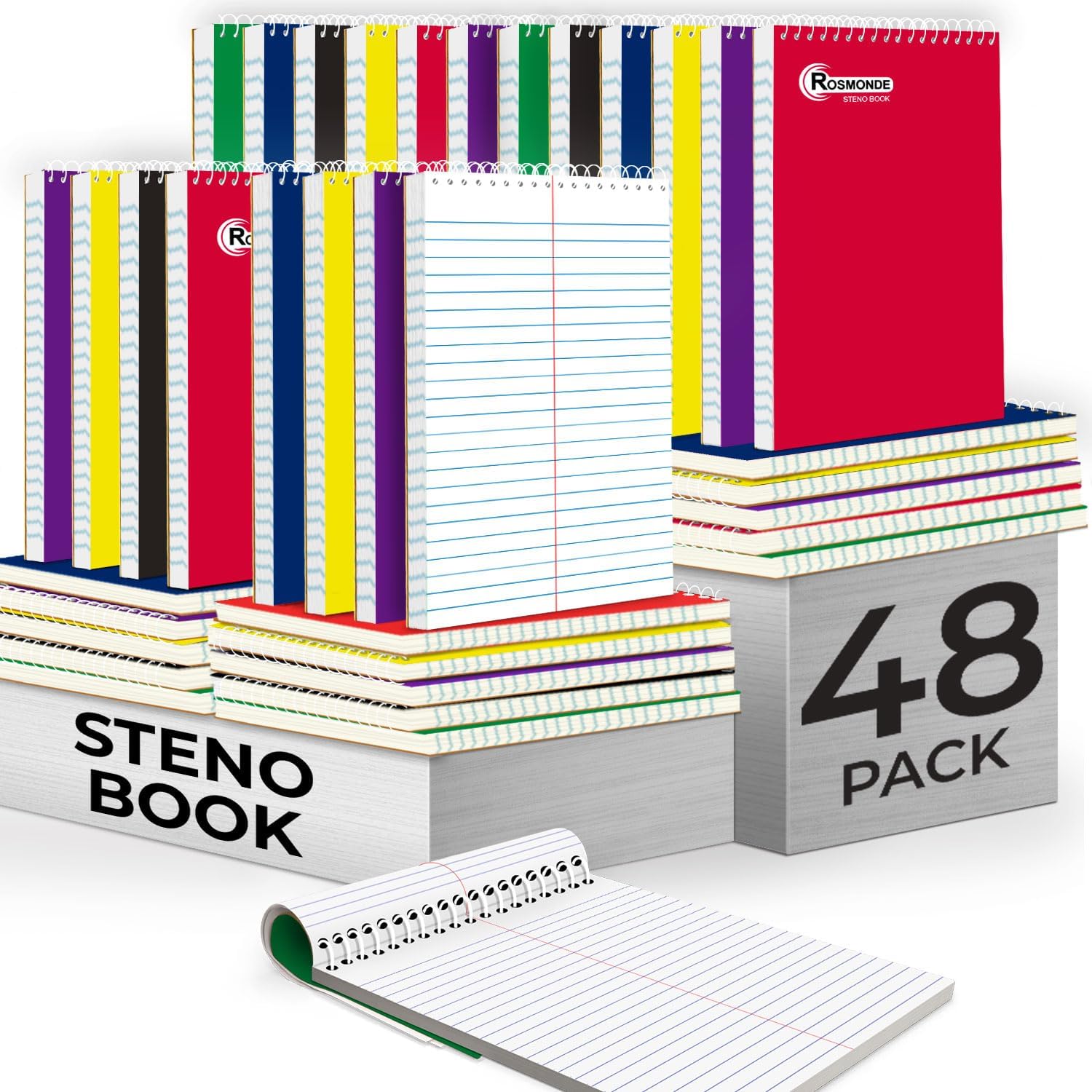 Rosmonde 48 Pack Bulk Spiral Steno Book, 6" x 9" Gregg Ruled Steno Notebook, Assorted Covers, 80 Sheets (160 Pages) Bulk Steno Notebooks for Writing Notes in Office, School, College, Spiral Note Pads