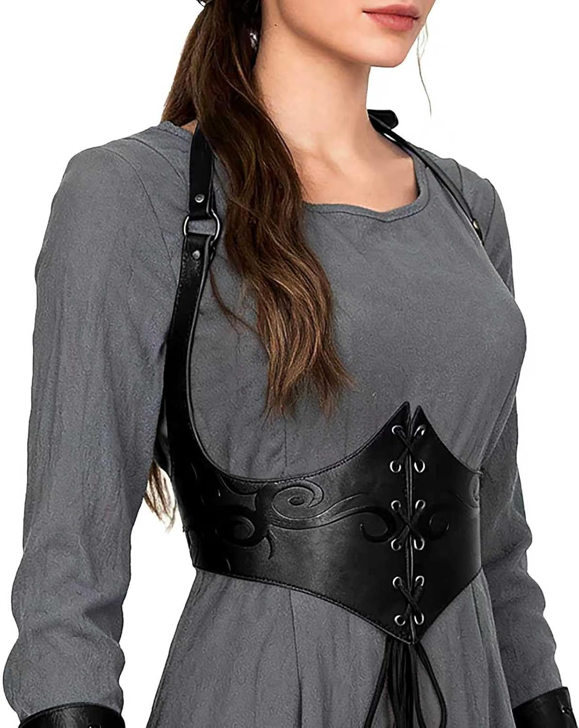 Joukavor Medieval Leather Corset Belt Renaissance Waist Cincher for Women Halloween
