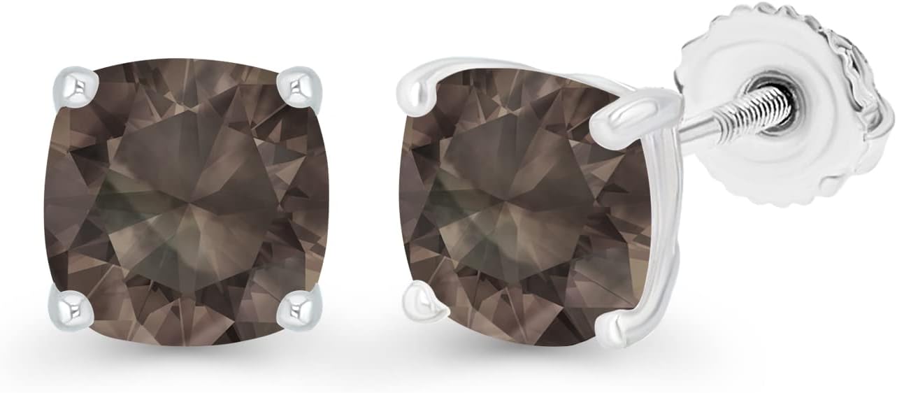 14K Gold Plated 925 Sterling Silver Hypoallergenic 5mm Cushion Cut Genuine Birthstone Solitaire Screwback Stud Earrings