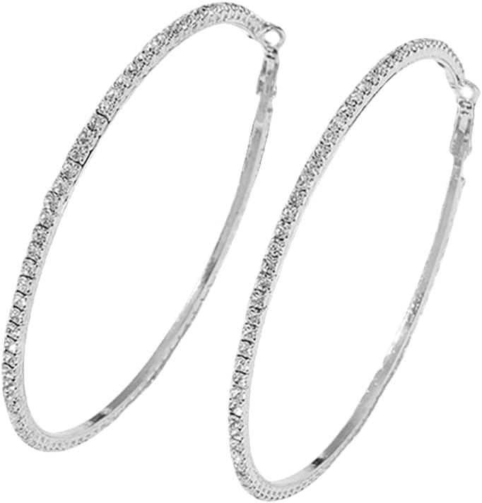 Large Rhinestone Hoop Earrings for Women Girls Hypoallergenic Extra Big 80mm Huggie CZ Hoops Dangle Drop Earring Fashion Chic Party Jewelry Gifts 3 inch