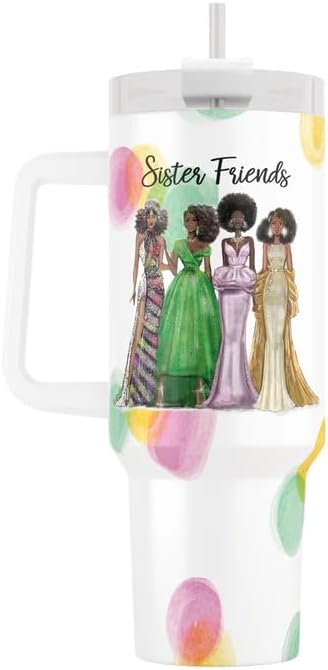 40oz Tumbler with Inspirational Quotes, African American Art, Handle, Straw & Twist-On Lid – Leak-Proof Insulated Drinkware for Black Women, Uplifting Gift - Sister Friends