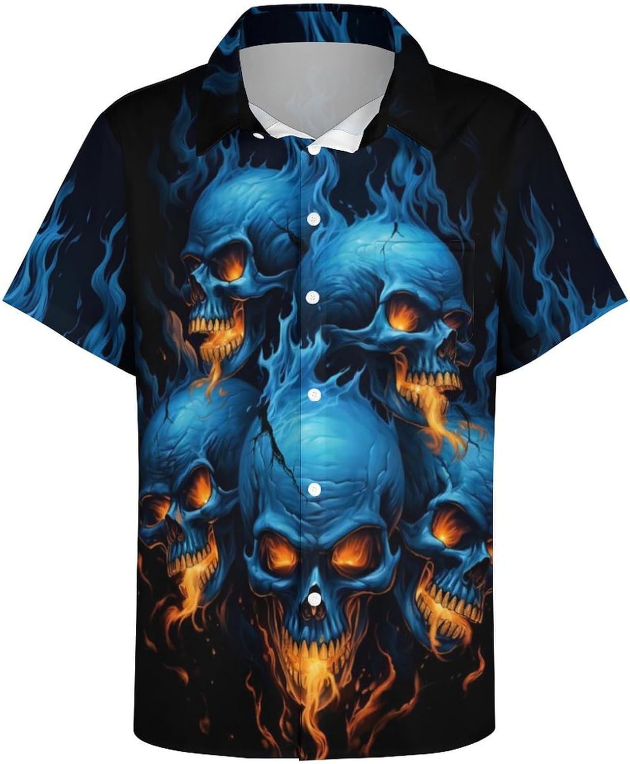 Men's Button Down Shirt with Skull Cool Graphic Casual Hawaiian Beach Shirts