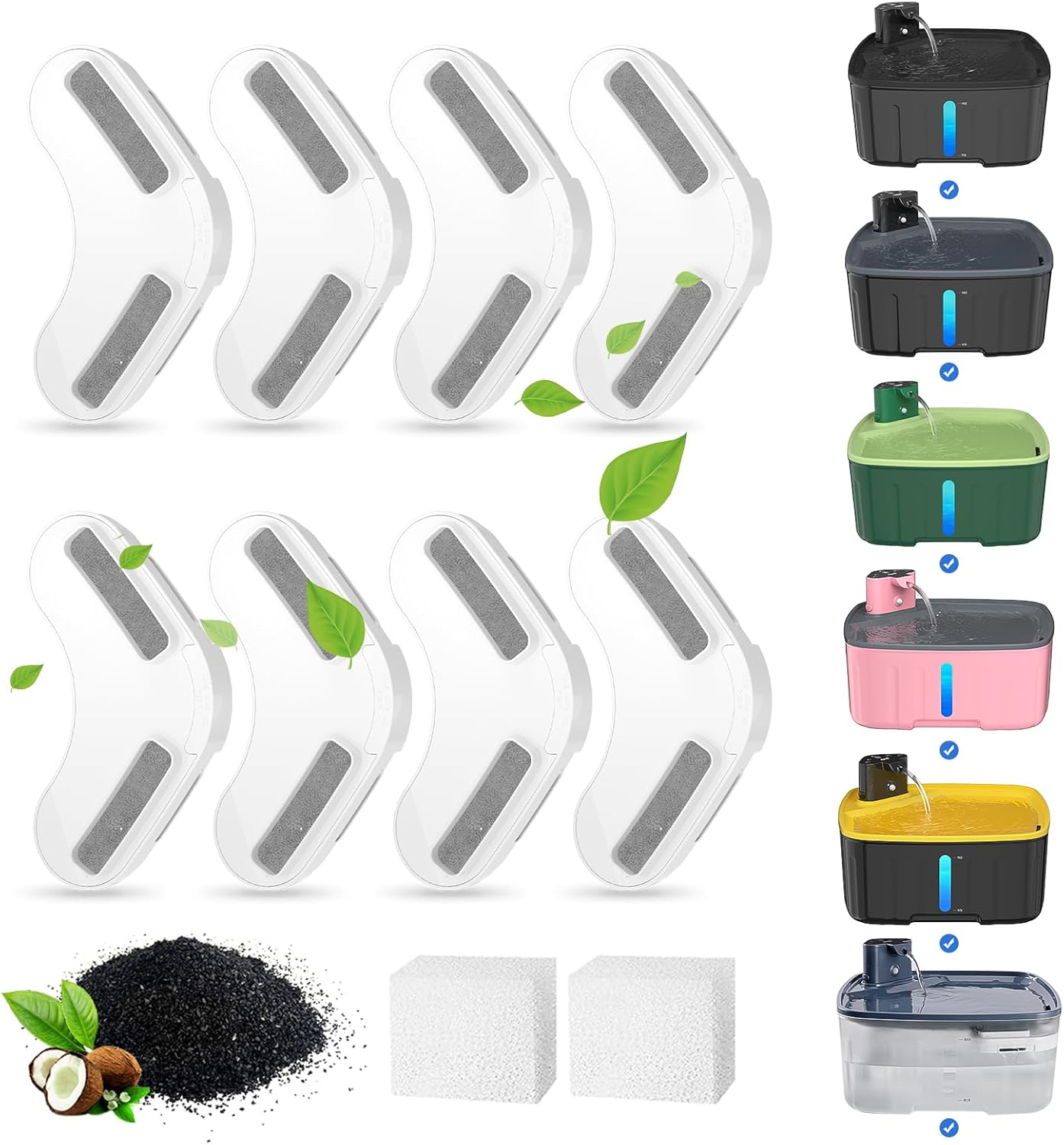 Dog Water Fountain Filters - 8 Packs Replacement Filters & 2 Sponges for Large Dog Fountain, Wireless