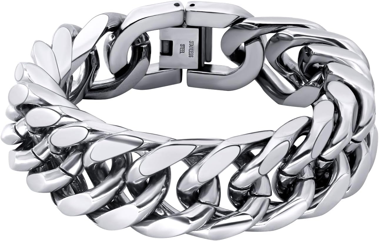 8/12/17mm Wide Cuban Link Bracelet for Men Father Gift 18K Gold/Black Plated Stainless Steel Bracelets 7.4-9 Inches(Gift Wrapped)