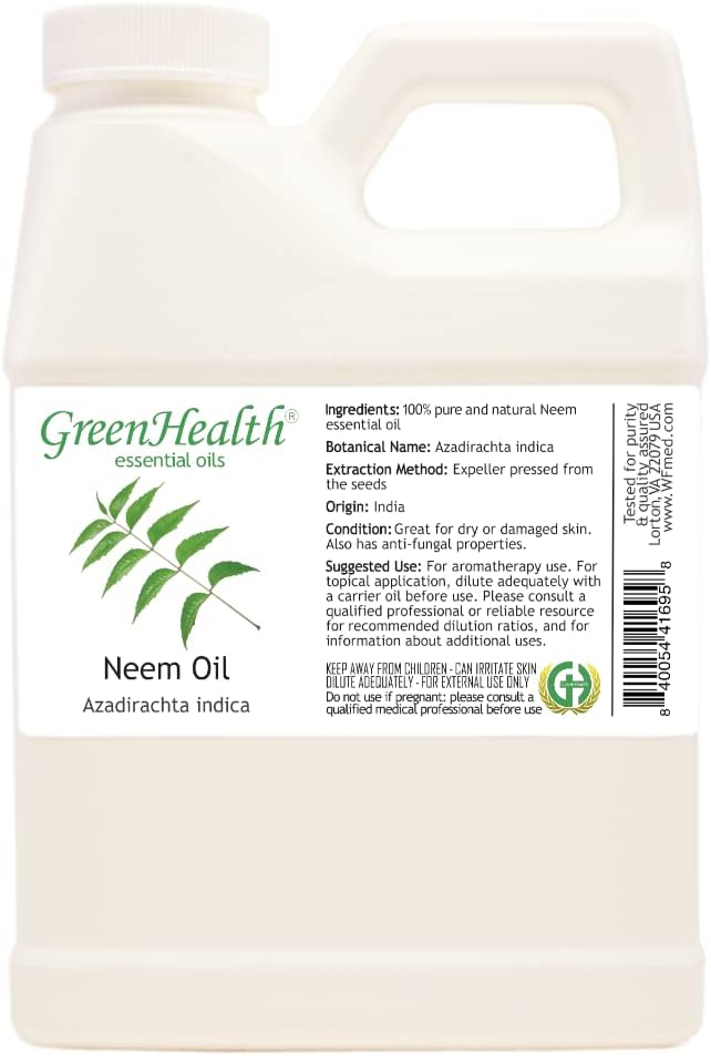 Neem Oil by GreenHealth – 100% Pure Cold Pressed, Unrefined – 16 oz – Natural Oil for DIY, Soap Making, and Crafting