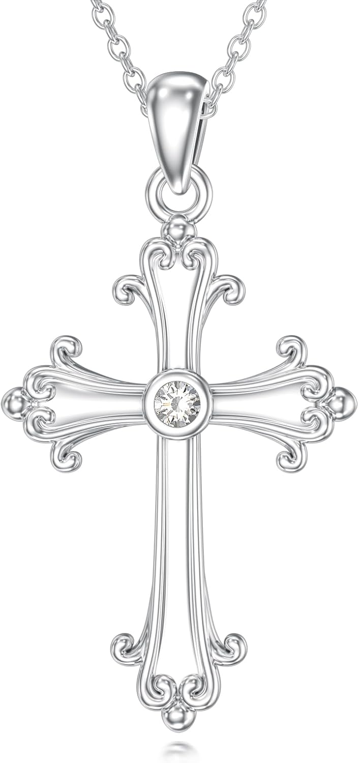 Diamond Cross Necklace for Women 925 Sterling Silver Cross Pendant Necklace with Lab Grown Diamonds Jewelry Gifts for Women