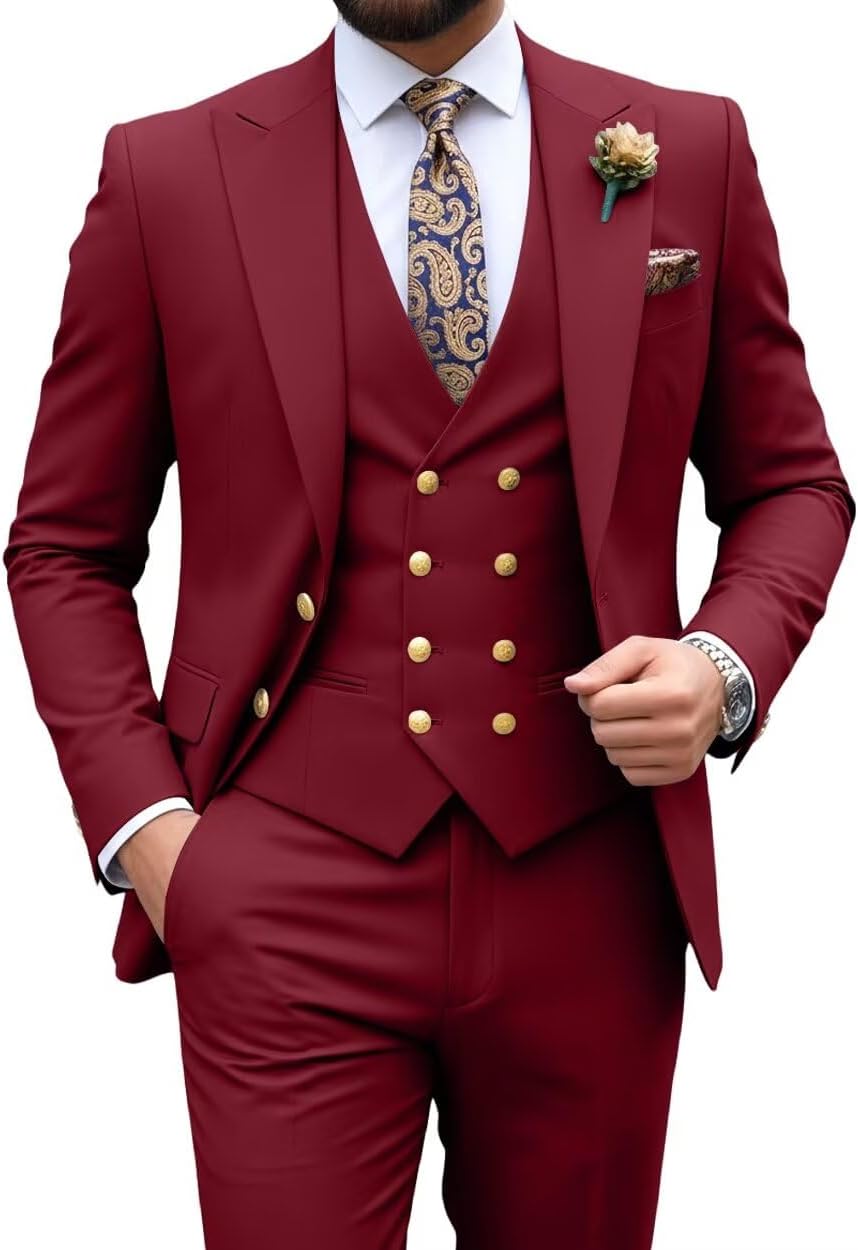 Men's Suit Slim Fit 3 Piece Double Breasted Suits Prom Tuxedo Set Formal Casual Jacket Blazer Vest Pant Wedding Suit for Men