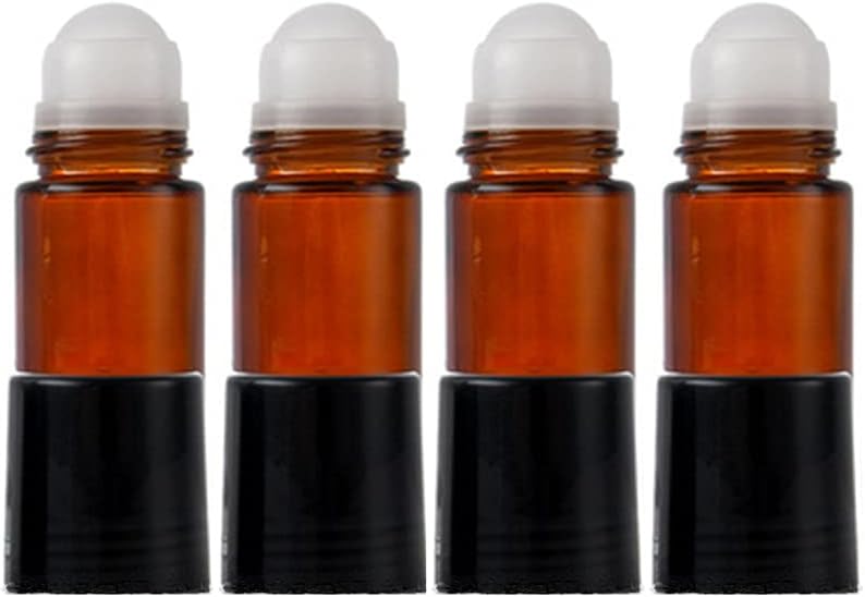 4 Pack 30ml/1 oz Amber Glass Roller Bottles Deodorant Roll On Bottles Travel Refillable DIY Deodorant Containers With Plastic Roller Ball For Fragrance Essential Oil Perfume