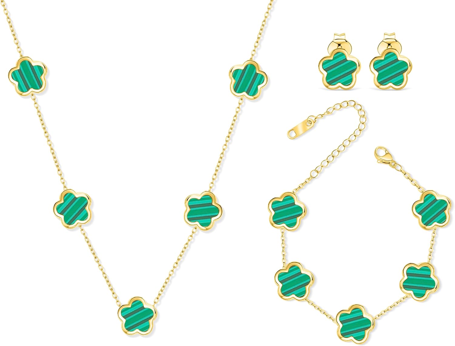Five Leaf Clover Jewelry Set for Women |18K Gold Plated Bracelet Necklace Earrings | 5 Leaf Lucky Choker and Ear Studs for Mother and Daughter
