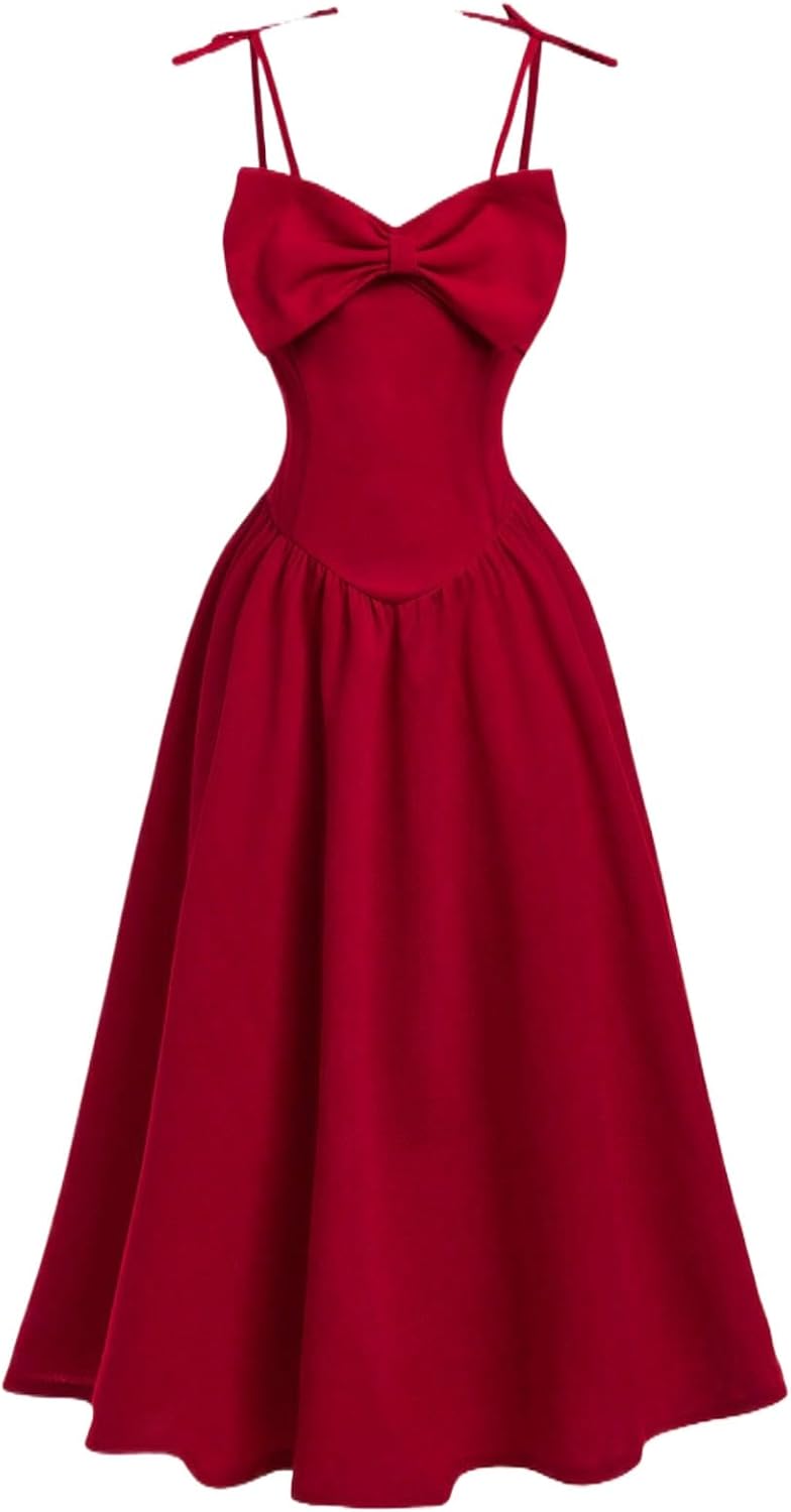 Girl Bow Knot Shoulder Dress Red Sleeveless Cami Dress A Line Dresses Flared Short Dress for 8-12 Y