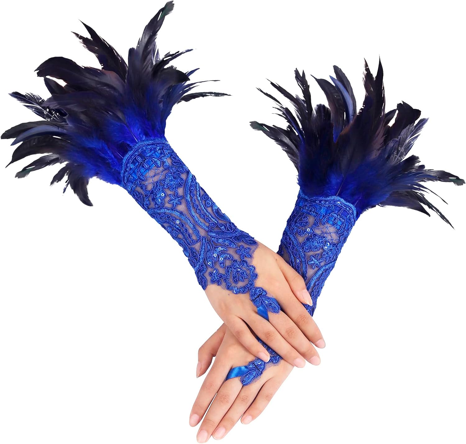 HOMELEX Women Black Lace Feather Gloves Witch Angel Costume Accessories Swan Wings Wrist Bands