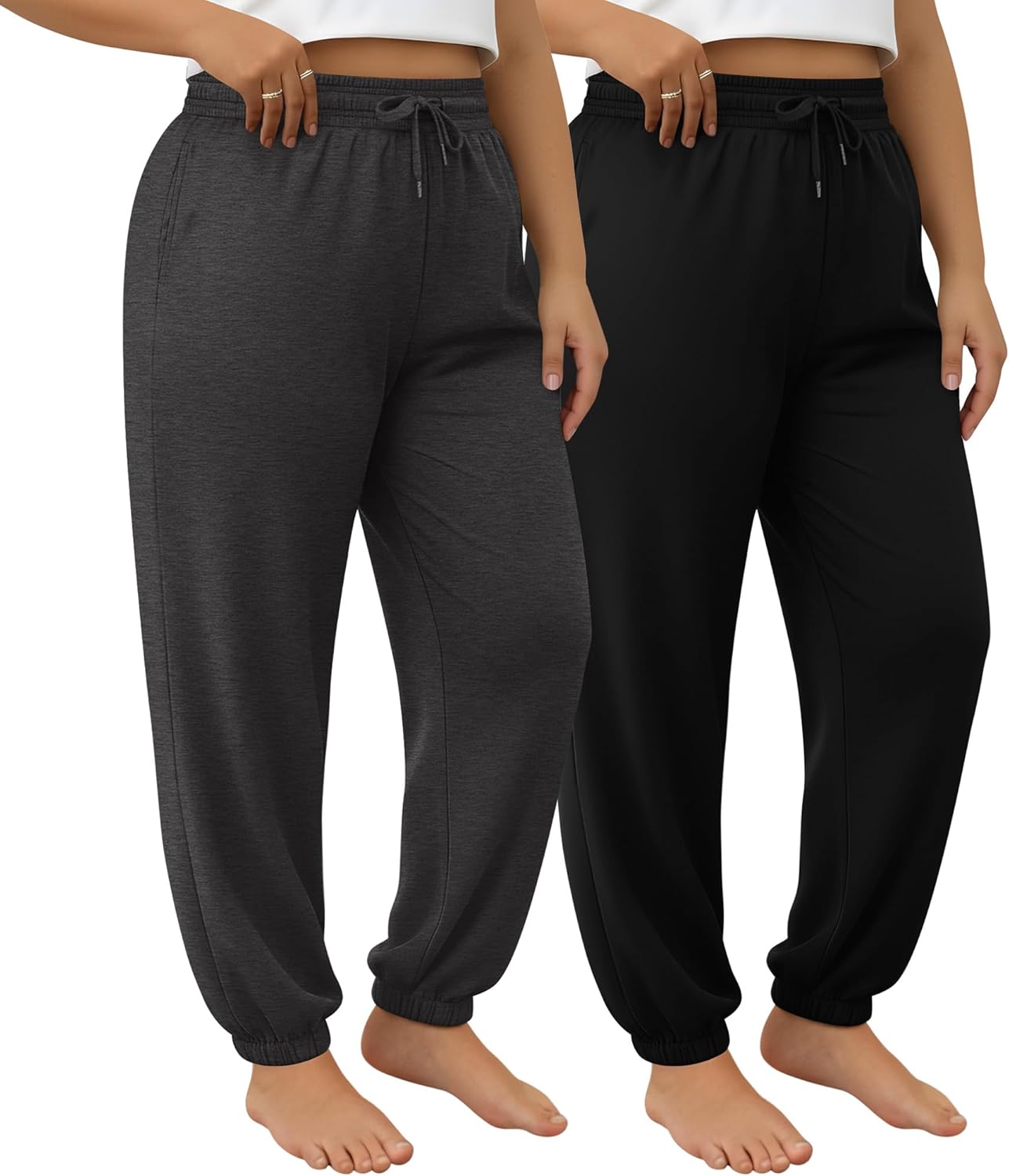2 Pack Women's Plus Size Joggers, Drawstring Loose Baggy Sweatpants Cozy Athletic Casual Yoga Pants with Pockets