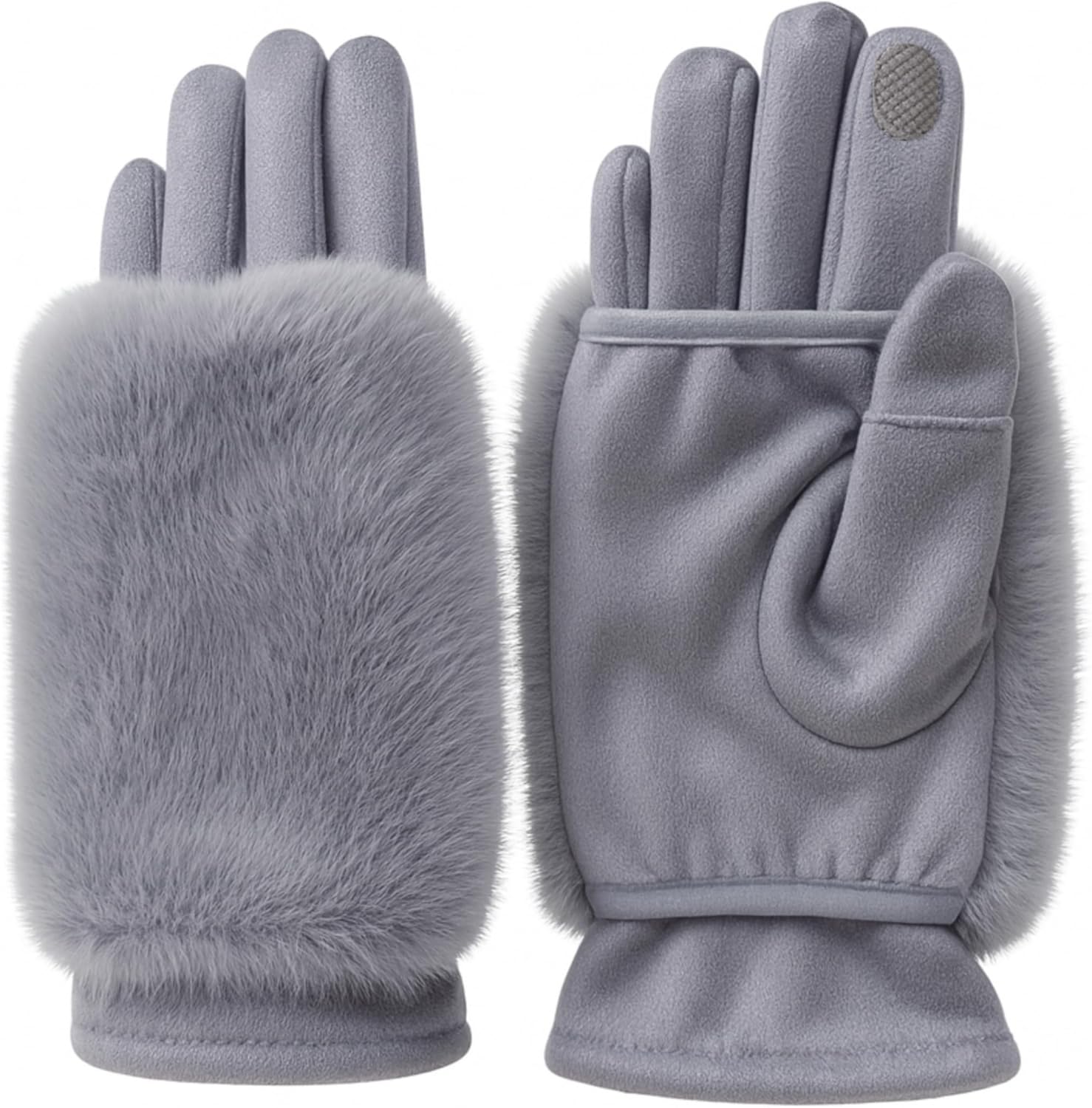 Touchscreen Winter Gloves for Women: 3-in-1 Convertible Fingerless & Full, Detachable Faux Fur Cuffs, Driving
