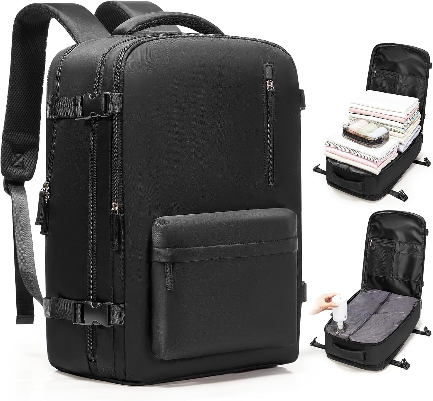 - Ergonomic Comfort System: Designed with a breathable padded back panel and adjustable pressure-relieving shoulder straps for all-day support. The pass-through luggage strap allows hands-free mobility, making this compression backpack for travel a reliable partner on the go.