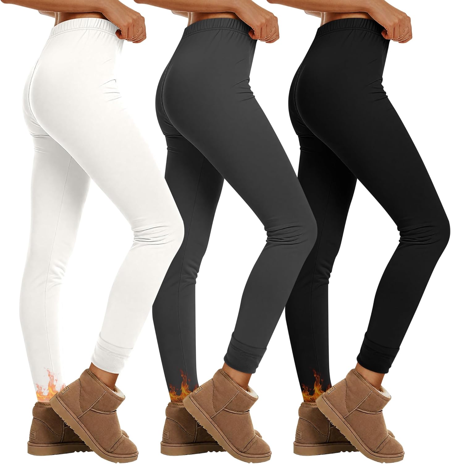 3 Pack Fleece Lined Leggings for Women Winter Warm Thermal High Waisted Tights Stretchy Casual Lounge Pants