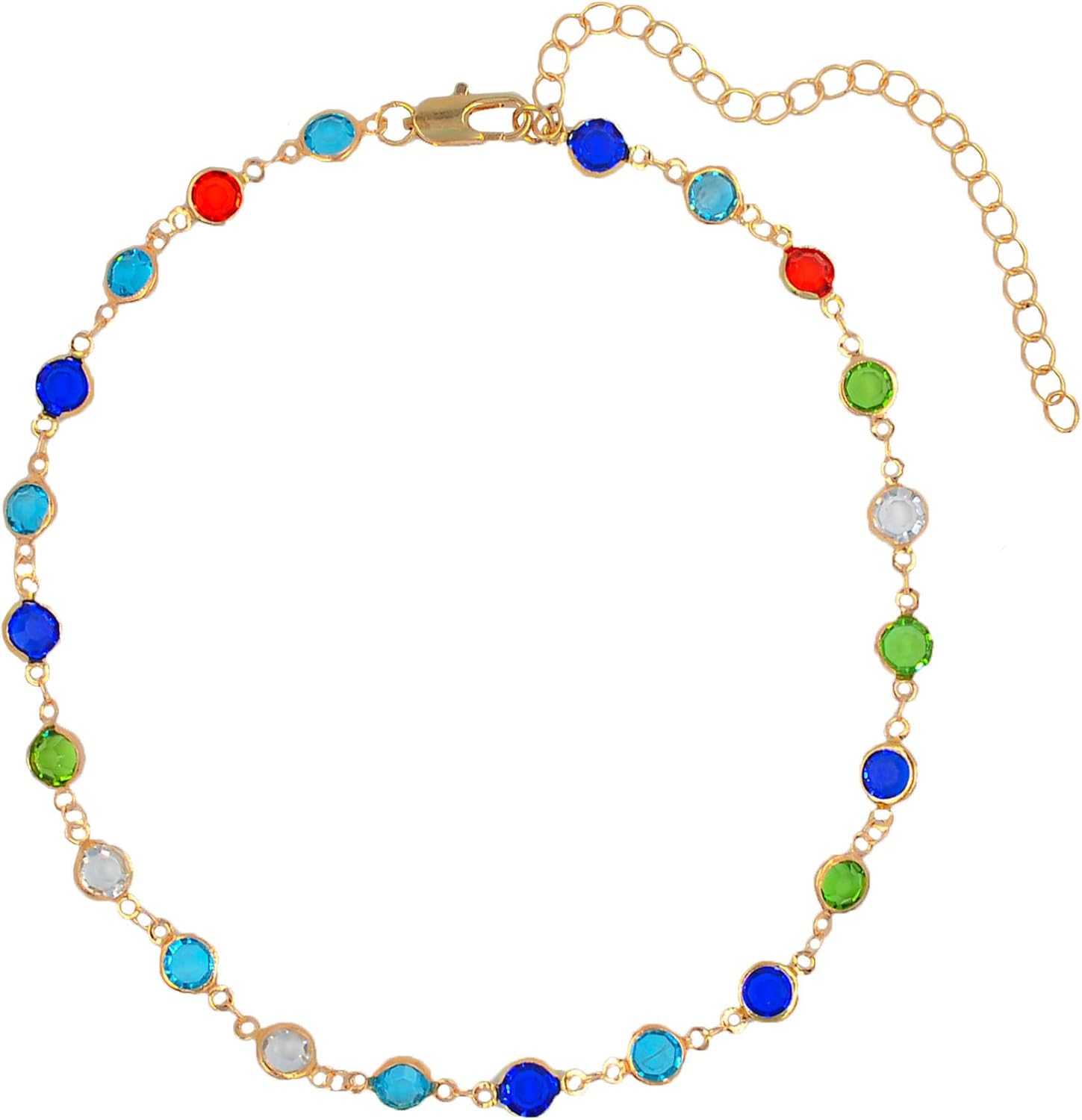 Dreuyet Colorful Gemstone Necklace for Women Multicolor CZ Rainbow Chain Sparkly Choker Dainty 14K Gold Plated Crystal Necklace Party Prom Jewelry