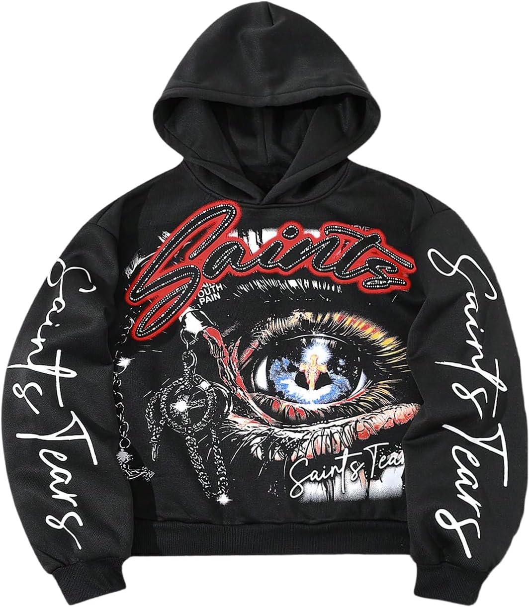 Men's Eye Print Graphic Hooded Sweatshirts Hip Hop Hooded Sweatshirts Pullover Streetwear