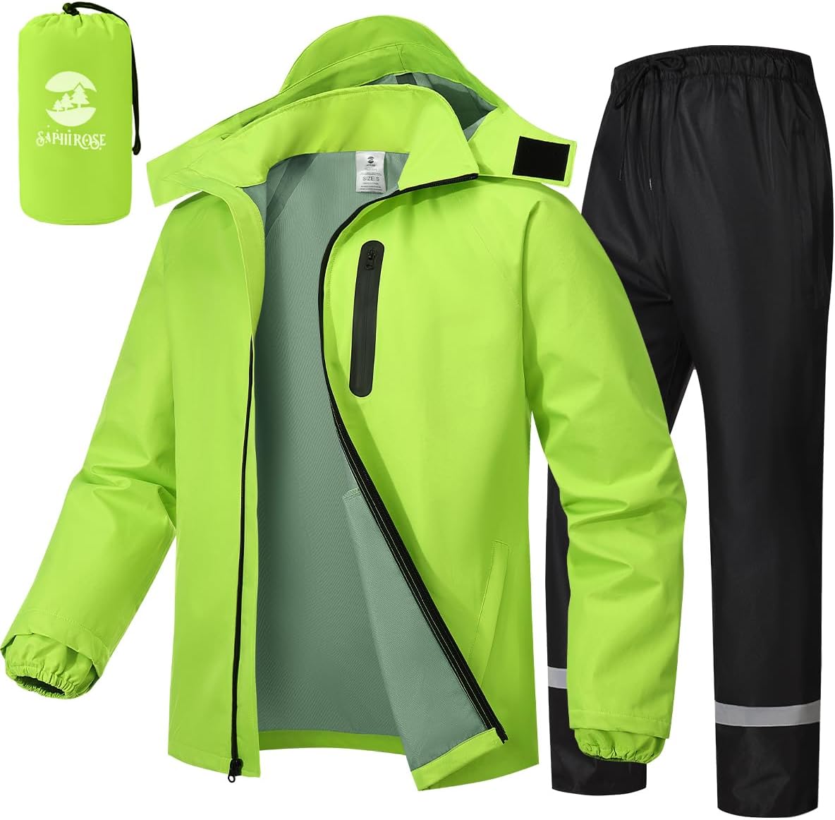 SaphiRose Men's Waterproof Rain Suit 2pcs/set Packable Rain Gear for Golf Motorcycle Fishing