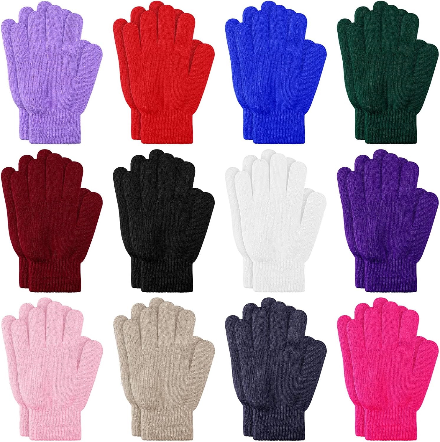 Janmercy 12 Pairs Adult Winter Gloves Colorful Knit Gloves Stretchy Warm Gloves for Men or Women 12 Colors