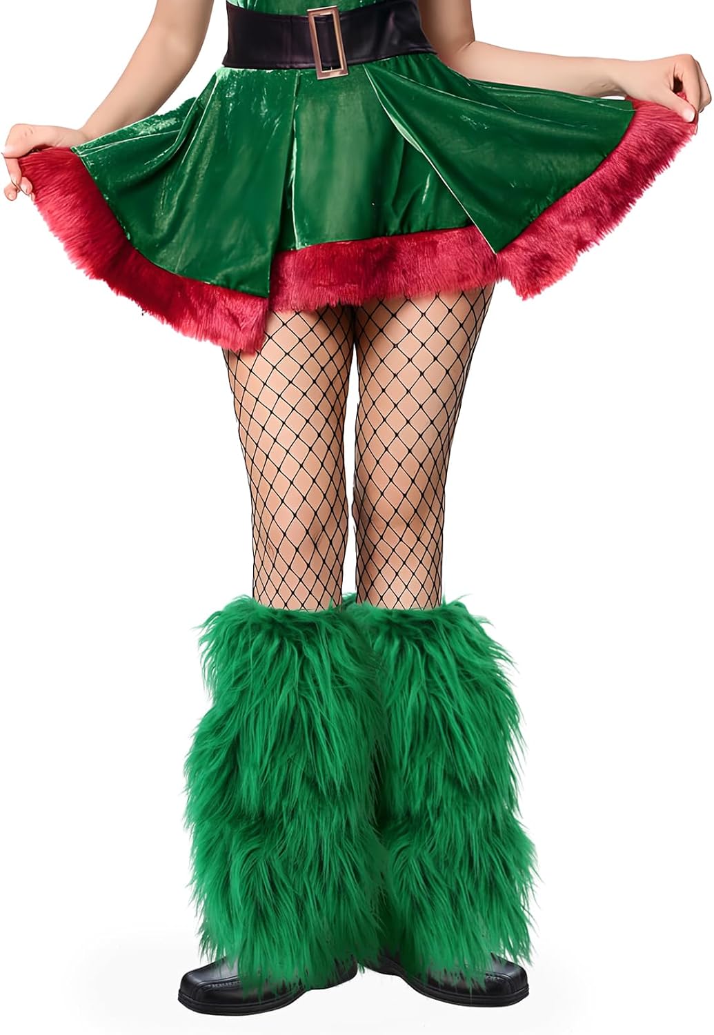 XEPST Christmas Faux Fur Fuzzy Leg Warmers Furry Boot Covers for Women, Women's Fur Leg Warmers Warm Fuzzy Boot Cuff Boot Sleeves for Party Costumes, Green