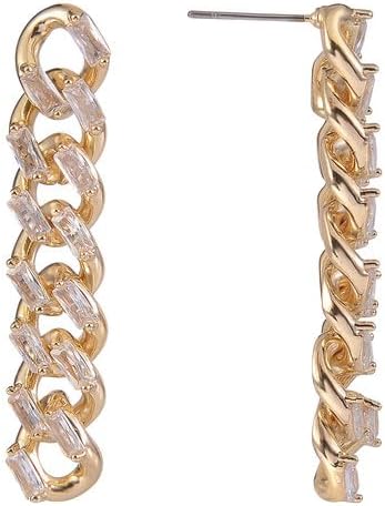 Daisy Fuentes Gold Tone Link Linear Earrings with CZ Stones