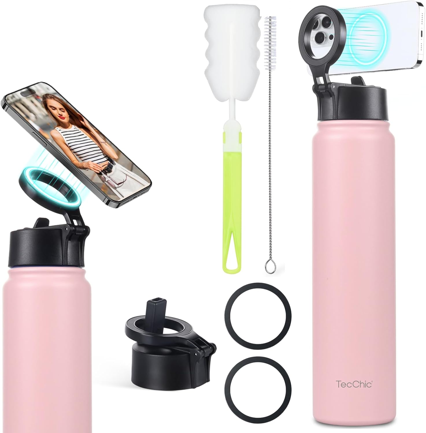 - ๐ฏ๐๐๐ ๐-๐ญ๐๐๐ ๐ท๐๐๐๐ ๐ผ๐๐:Built-in magnetic mount (a practical magnetic water bottle holder) compatible with MagSafe iPhones (17/16/15/14/13/12 series, including Pro Max/Pro/Plus/Air/Mini) and comes with a universal magnetic ring for Android/non-MagSafe devices. This magnetic cup holder feature ensures your phone stays put, whether youโre following a workout video, cooking, or using GPSโeven when the bottleโs full