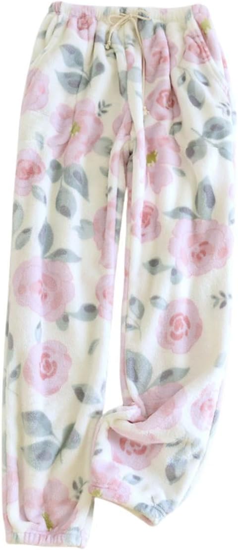 Womens Fuzzy Pajama Pants Cute Heart Sleep Lounge Bottoms Comfy Soft Long Pj Pants with Pockets