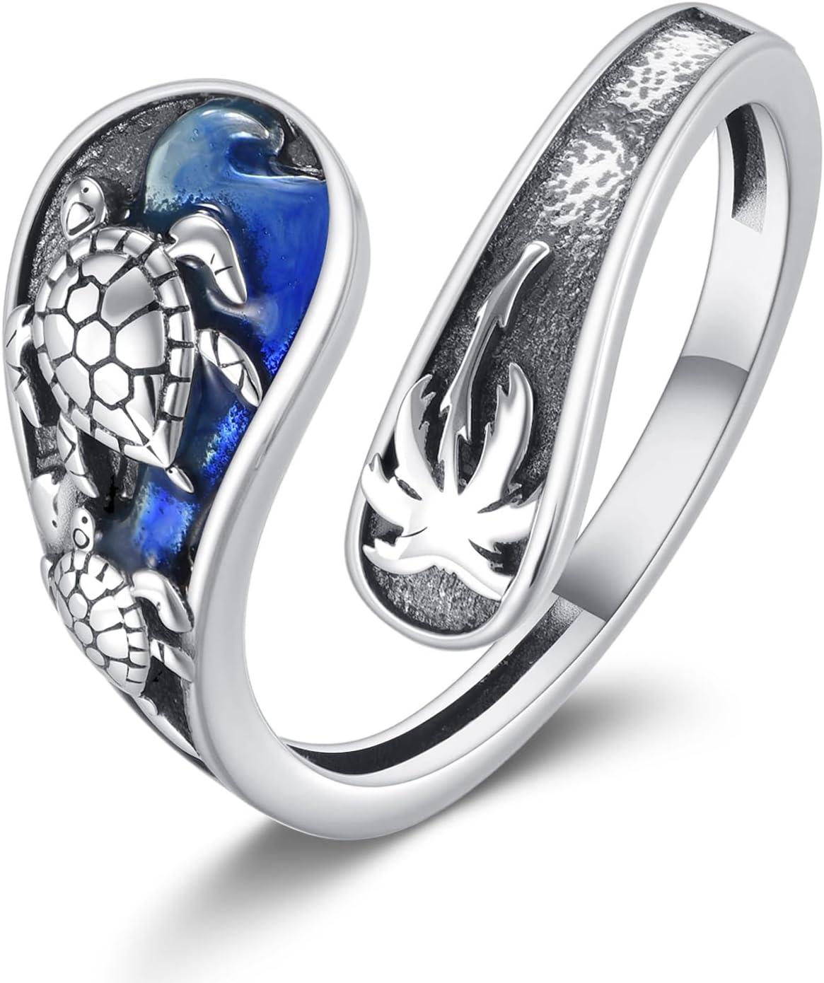 URONE Turtle Spoon Ring Sterling Silver Sea Turtle Thumb Ring Ocean Jewelry Gifts for Women