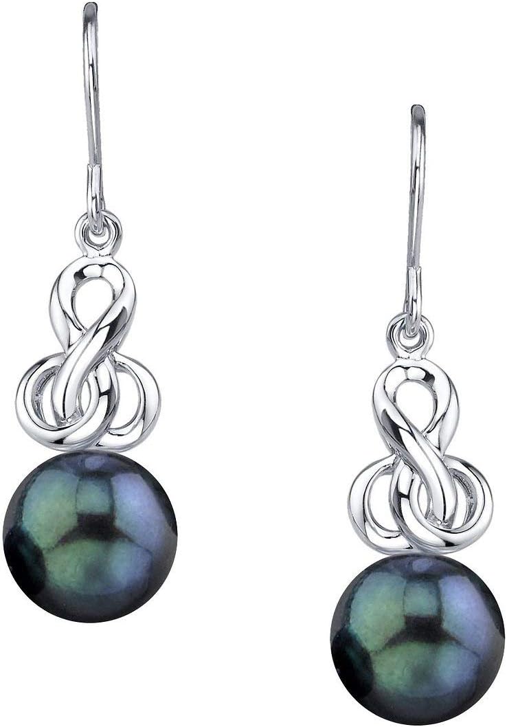 THE PEARL SOURCE Genuine Black Japanese Akoya Saltwater Cultured Pearl Adrian Earrings for Women