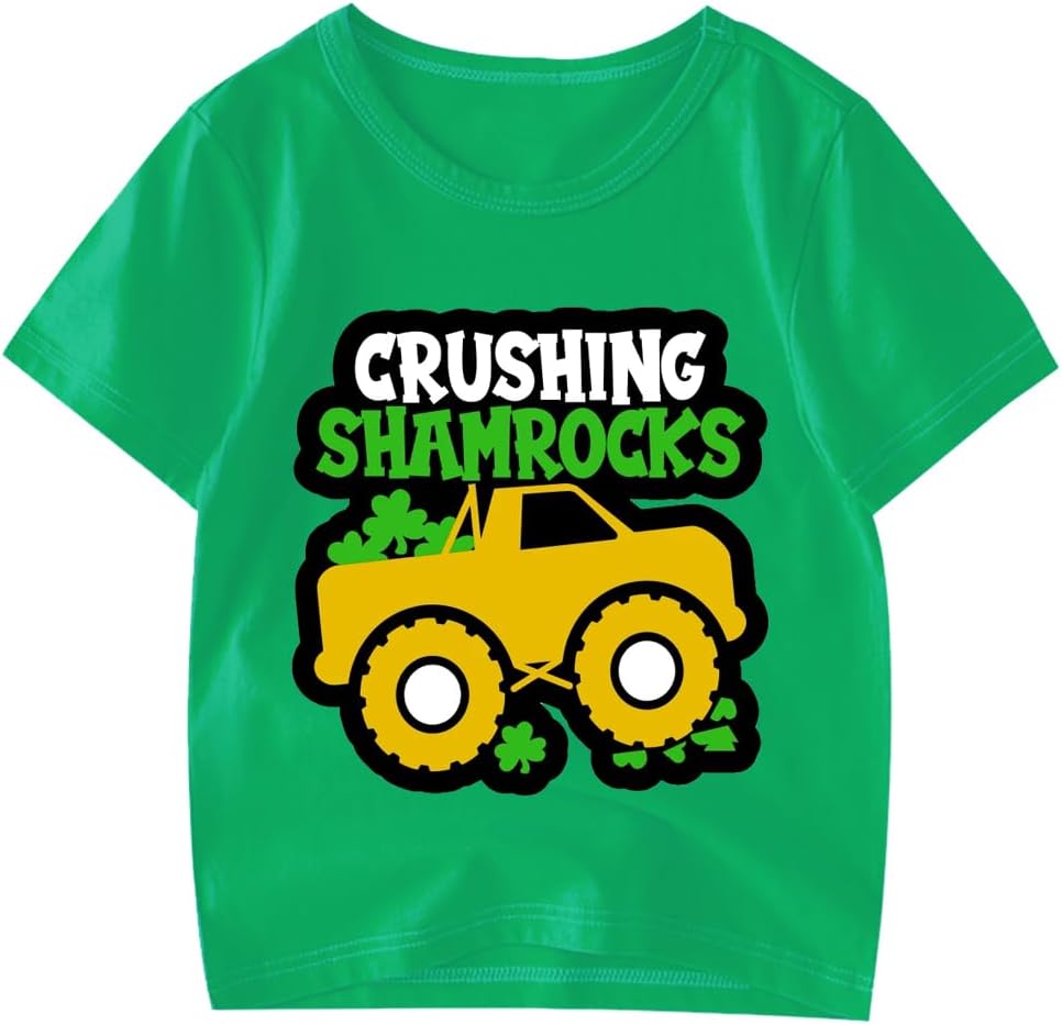 Kids St Patricks Day Shirt Girls Boys Patrick's Shamrock Clover Monster Truck Dinosaur Bow Toddler Short Sleeve 2-7T
