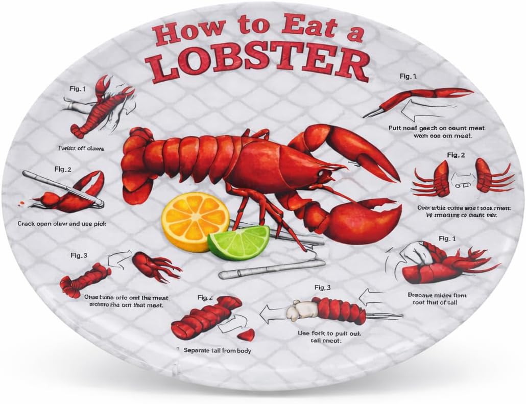 4 Lobster Plates OVAL Plastic How To EAT LOBSTER Diagram