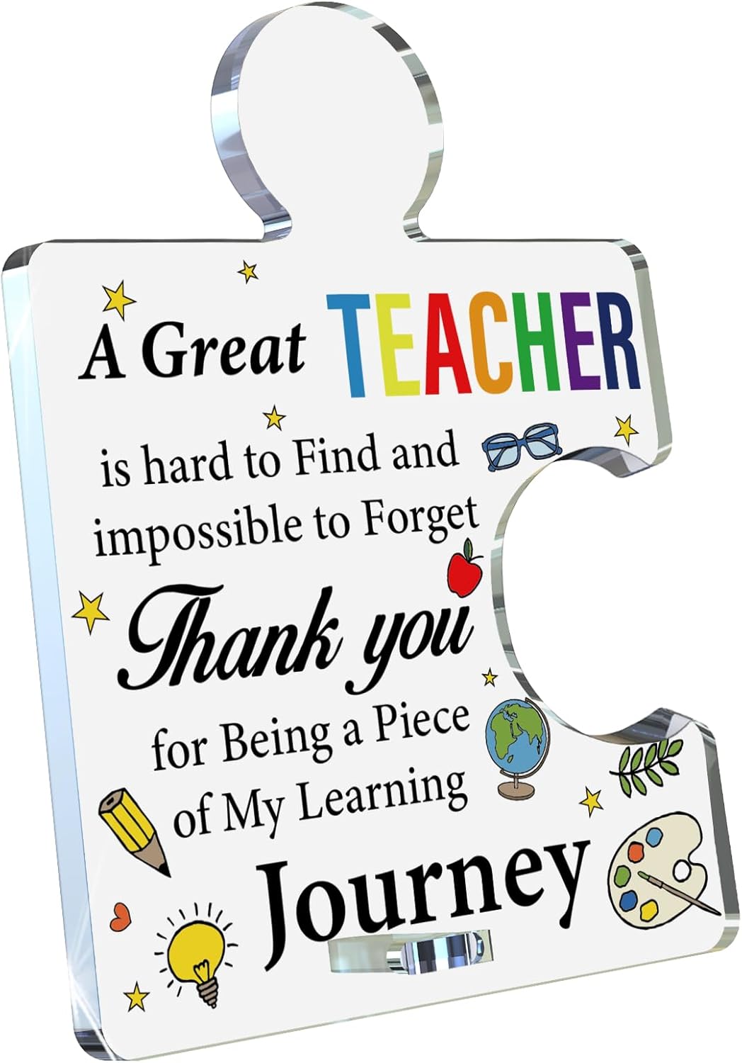 Thank You Gifts for Teacher, Best Teacher Appreciation Gifts for Christmas Birthday Thanksgiving End of Year, Teacher's Office Decor Acrylic Puzzle Plaque Sign Desk Decor