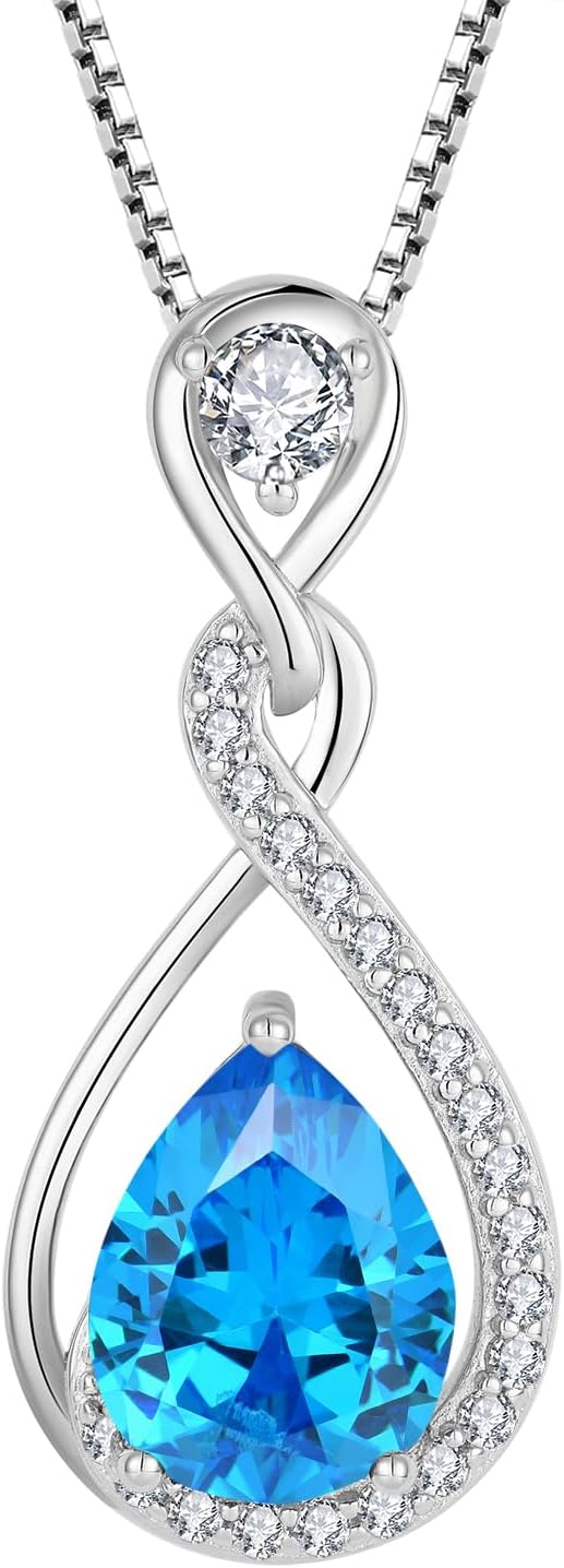 Women Pendant Necklace,925 Sterling Silver Infinity Teardrop Birthstone Necklace with 5A Cubic Zirconia for Her Mom Mother Wife Jewelry Gifts