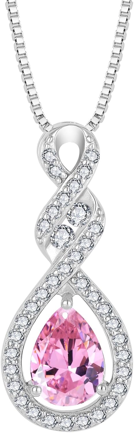 Women Infinity Necklace 925 Sterling Silver Twist Teardrop Birthstone Pendant with Chain 5A Cubic Zirconia Jewelry for Her