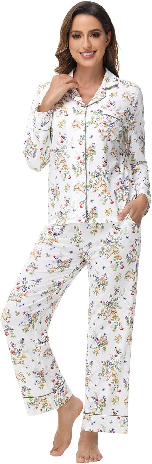 Pajamas Set for Women Soft Knit Button Down Sleepwear 2 Piece Breathable Viscose from Bamboo Pjs S-XXL