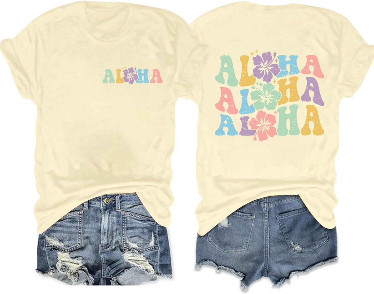 Hawaiian Shirts Women Hawaii Graphic Tees Summer Vacation Hawaiian Tshirt Vintage Hawaii Tropical Tops Outfits