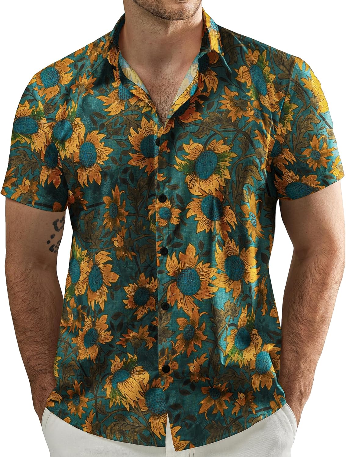 COOFANDY Men's Hawaiian Shirt Short Sleeve Floral Button Down Shirts Tropical Holiday Beach Shirts
