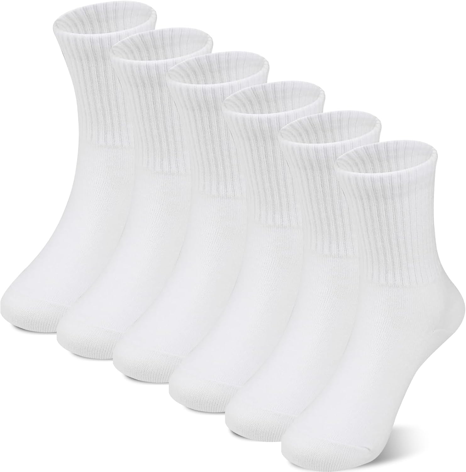 BONANGEL Kids Athletic Socks 6-8 Years Old, 6 Pairs Boys Girls White Cotton Crew Sock 8-10 10-12 Years