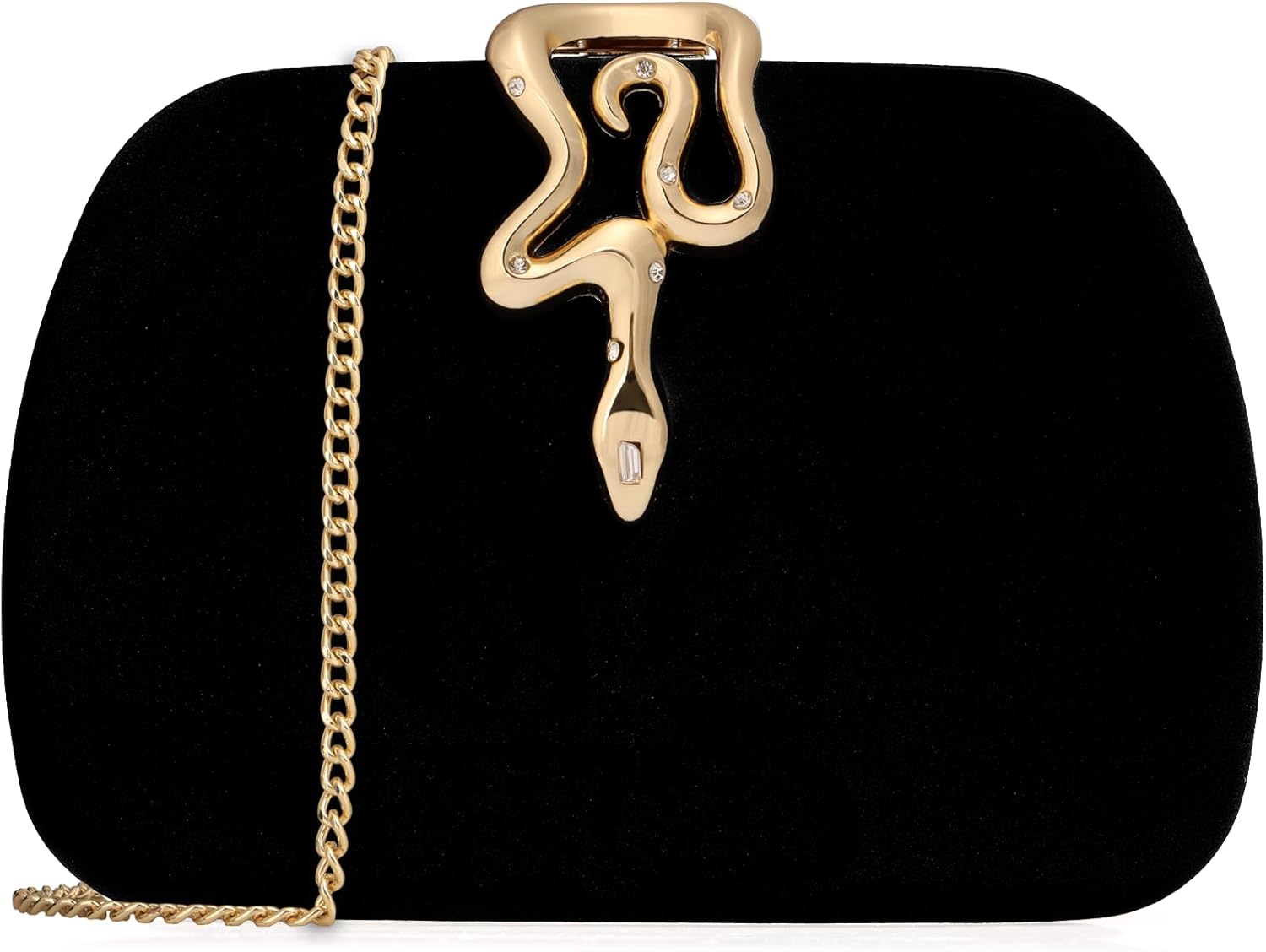 Velvet Evening Clutch Purse for Women-Snake Clasp Formal Handbag,Hard Shell Design Bag for Weddings, Parties, Prom