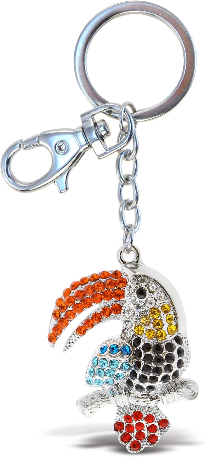 Toucan Keychain - Silver 3D Sparkling Charm Rhinestones Fashionable Stylish Metal Alloy Durable Key Ring Bling Crystal Jewelry Accessory With Clasp