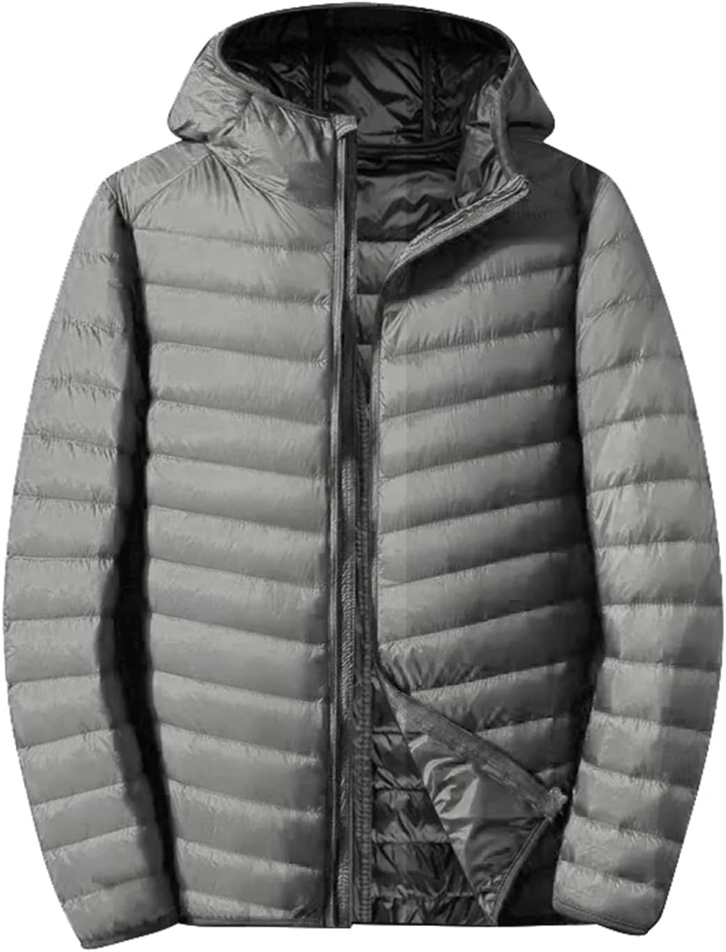 MOGU Puffer Jacket Men, Casual Lightweight Packable Winter Down Coat with Hood for Travel & Hiking