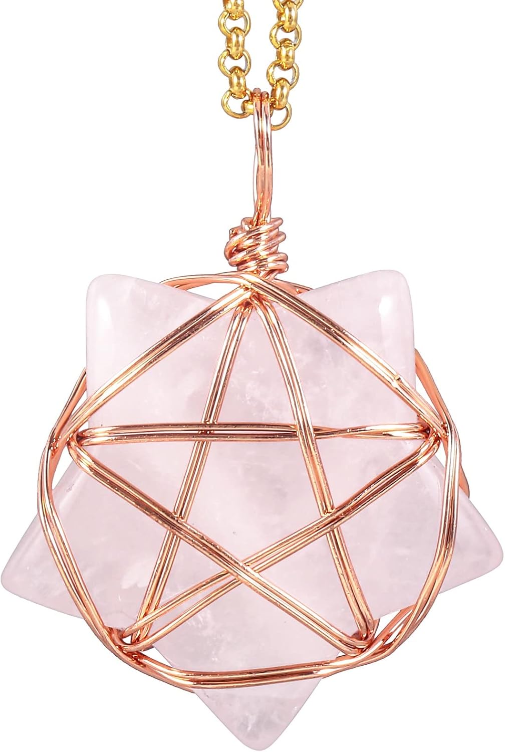 TUMBEELLUWA Crystal Star Pendant Necklace for Women Rose-Gold Copper Wire Wrapped Pentagram Star Stone Pendant with Chain