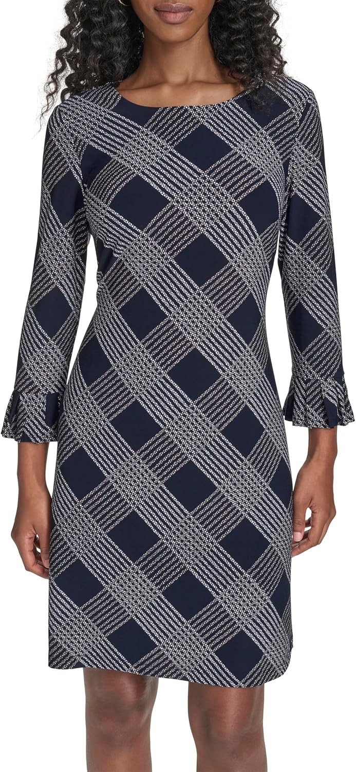 Tommy Hilfiger Womens 3/4 Ruffle Sleeve Jersey Shift Dress