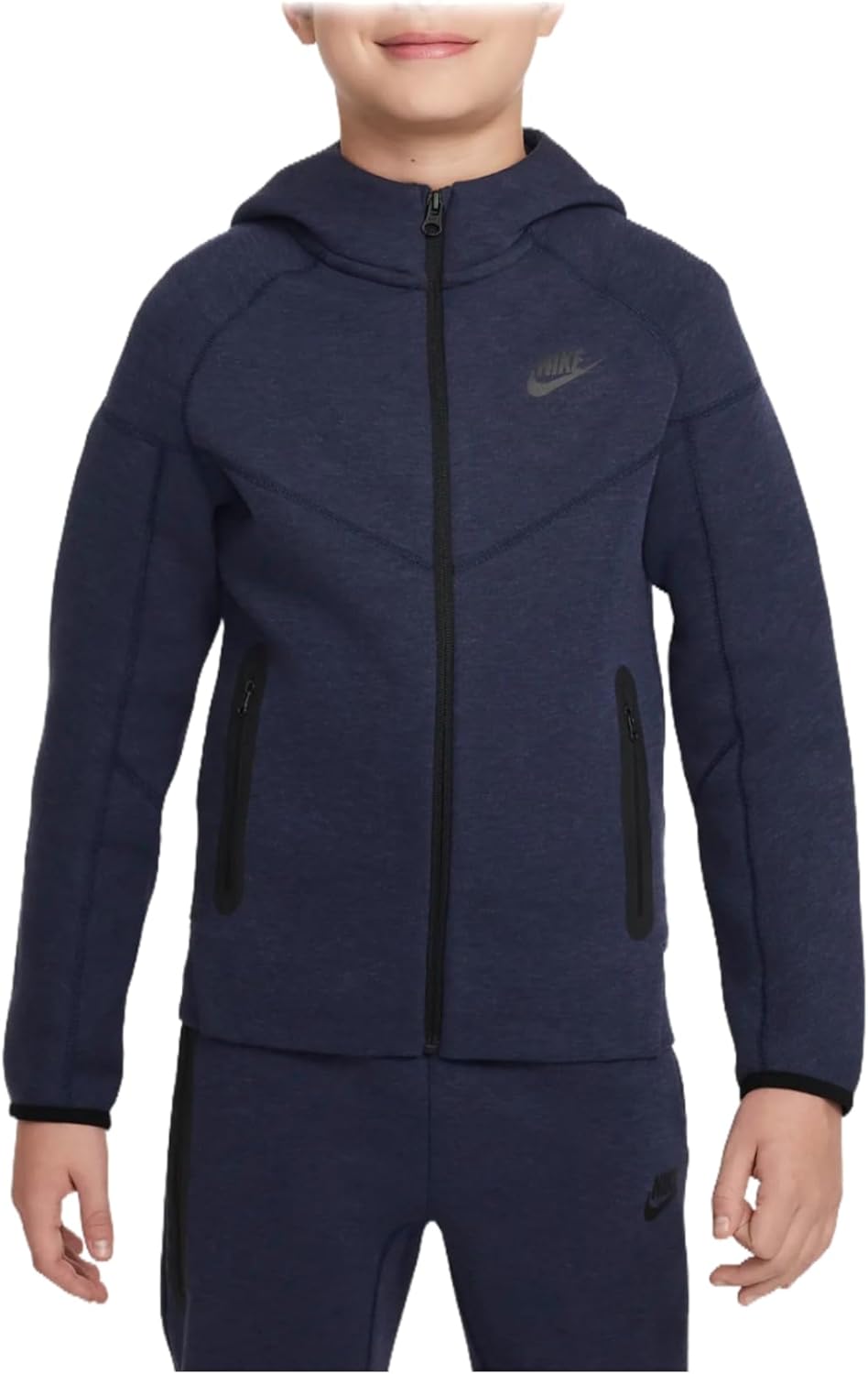 Nike Sportswear Tech Fleece Big Kids' (Boys') Full-Zip Hoodie (FD3285-473, Obsidian Heather/Black/Black) Size X-Small