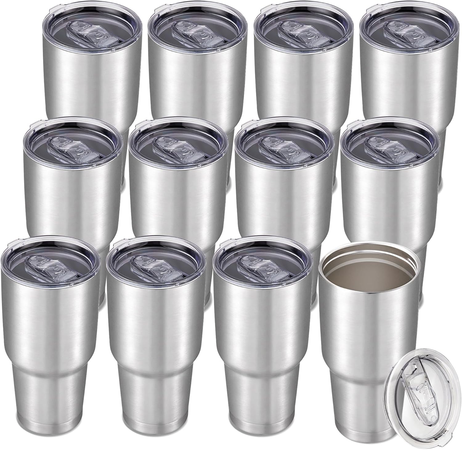 30 oz Tumbler with Lid Stainless Steel Tumblers Bulk Vacuum Insulated Cup Reusable Powder Coated Travel Mug Double Wall Leak Proof Cups Keep Cold Drinks for 12 Hours Stainless, Set of 12