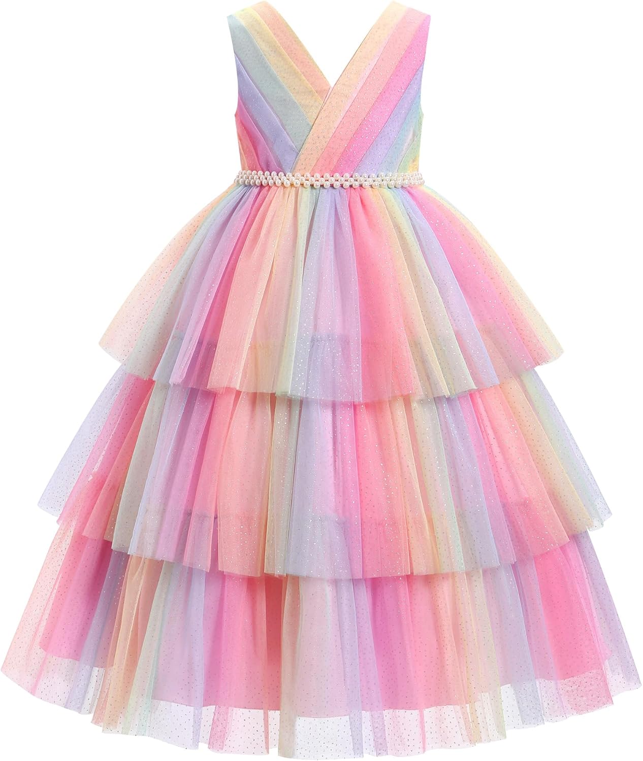 IBTOM CASTLE Flower Girl Dress Kids Birthday Dress Ruffle Pearls Tiered Tulle Party Dress Wedding Gown Prom
